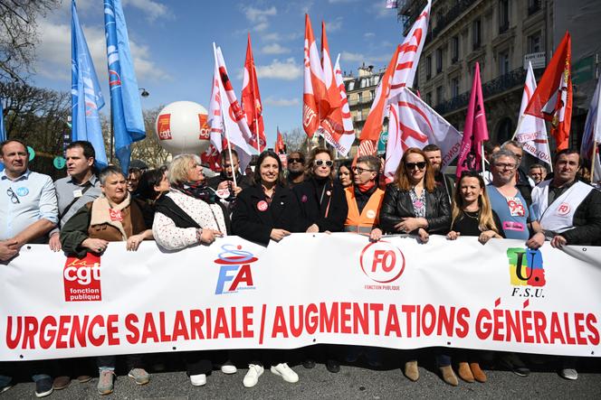 Lors d’une manifestation de la fonction publique dans le cadre d’un appel national des syndicats pour de meilleurs salaires,à Paris,le 19 mars 2024. BERTRAND GUAY / AFP Le contexte politique inédit provoque décidément des situations quelque peu originales. Jeudi 5 décembre,les agents de la fonction publique se mobilisent contre un projet qui n’est plus d’actualité,porté par un gouvernement qui n’est lui-même plus aux manettes. Mercredi,l’adoption par les députés d’une motion de censure déposée après le recours par Michel Barnier à l’article 49.3 de la Constitution sur le projet de loi de financement de la Sécurité sociale doit entraîner la démission du premier ministre. Le budget de la « Sécu » est donc rejeté et le débat parlementaire sur le projet de loi de finances pour 2025 s’arrête.