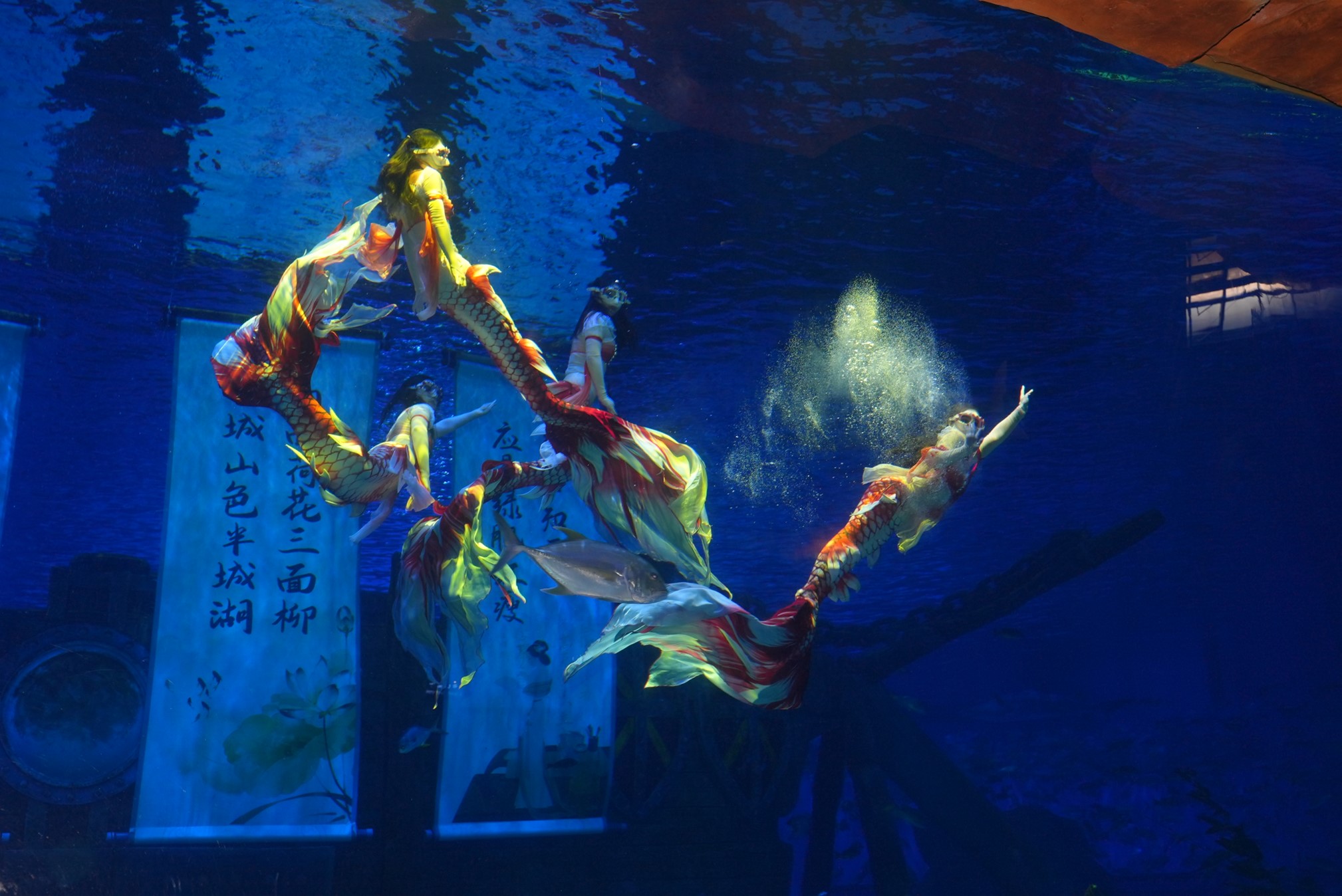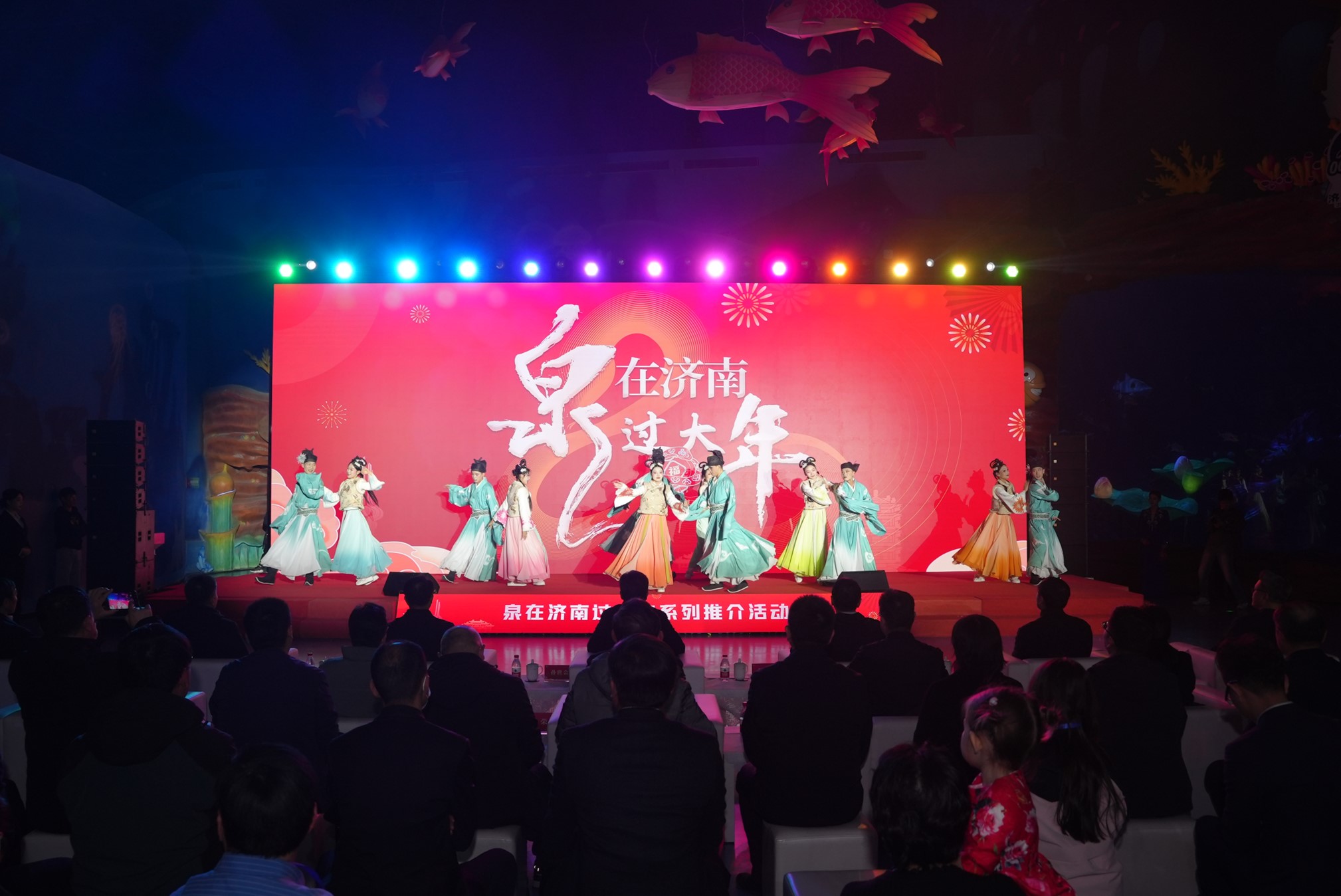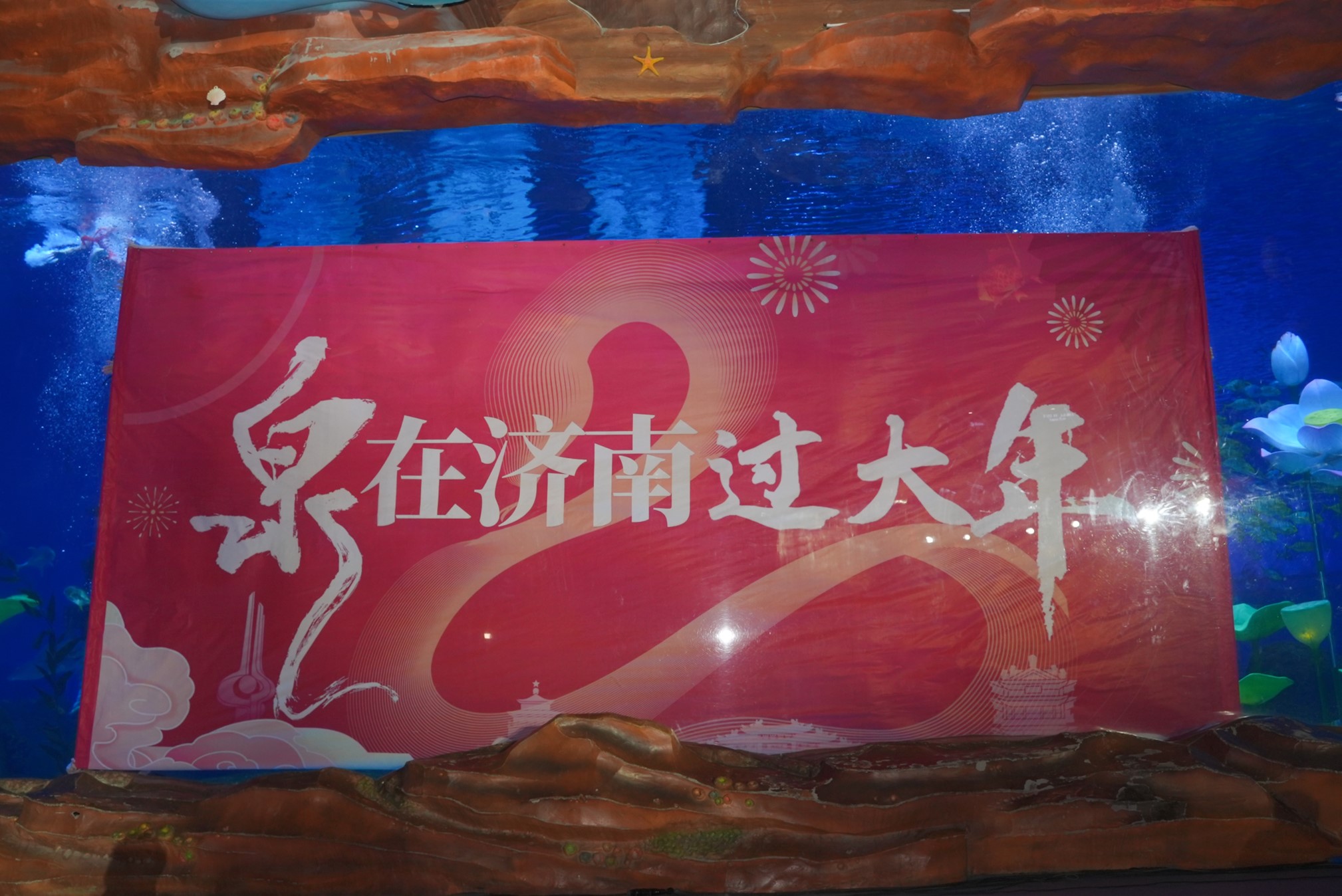 On January 22, the “Spend Spring Festival in Jinan” series of activities was officially launched at Sunac Sea World in Jinan. Amid the captivating “Koi Among Lotus” performance, a massive banner featuring the event’s name, “Spring Festival in Jinan,” was unfurled underwater. Inspired by the iconic description of Jinan—“Lotus blooms on all sides, willows frame three sides, mountain colors fill the city, and lakes cover half the town”—the event creatively combined the imagery of Jinan’s symbolic koi fish and lotus flower with elements of Chinese traditional culture, including classical poetry from the “Two An” cultural tradition. This blend of poetic beauty and modern marine aesthetics created a visually stunning and deeply meaningful spectacle for the audience.